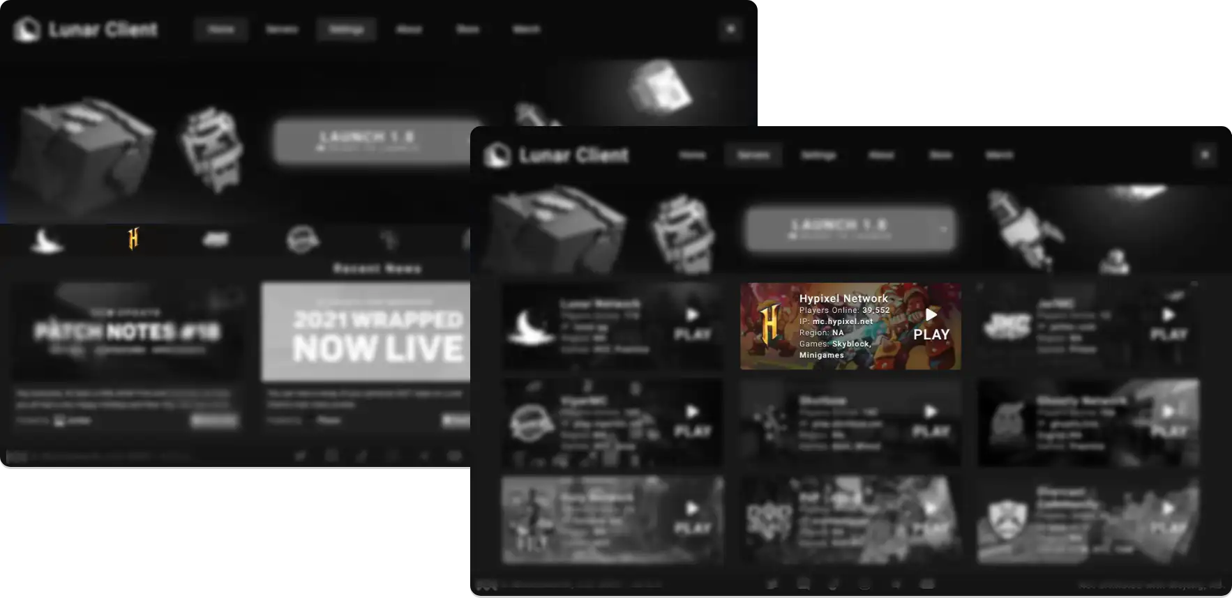 We have also added the Hypixel Network to our Launcher, allowing you to join Hypixel directly from the Lunar Client Launcher by clicking their logo on the Home page or their card on the Servers page.